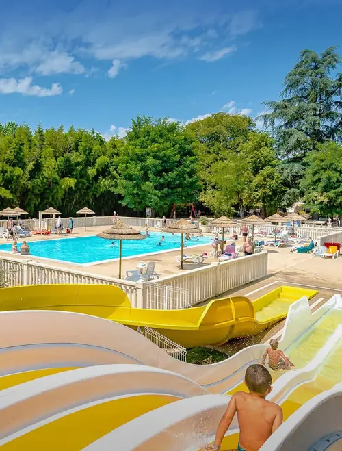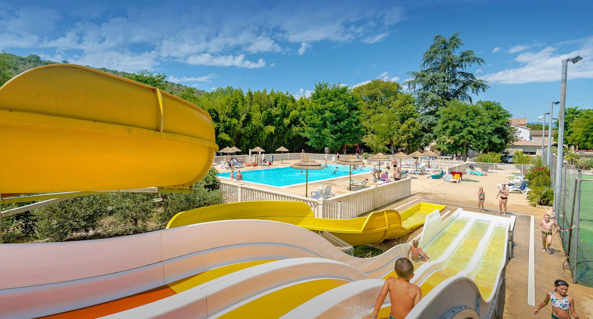 Notre camping avec parc aquatique Ardèche vous propose un espace aquatique composé de 4 toboggans, d’un grand bassin de nage chauffé et un espace jeux d’eau pour les plus petits.