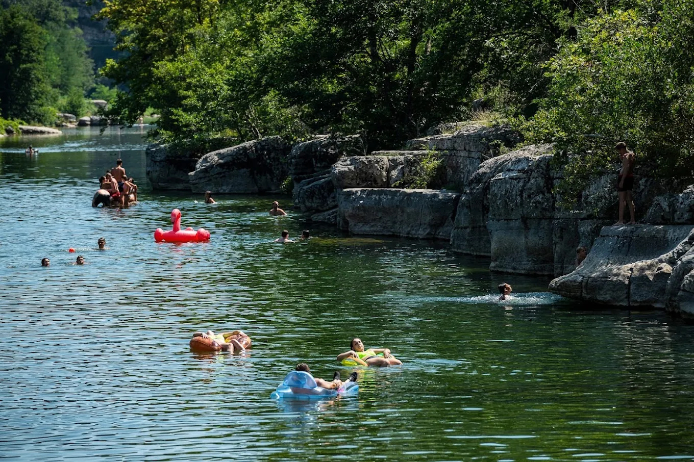 Profitez de vos vacances en Ardèche au Domaine Arleblanc, camping 4*, piscine chauffée et toboggans pour enfants, ambiance familiale au bord de la rivière.
