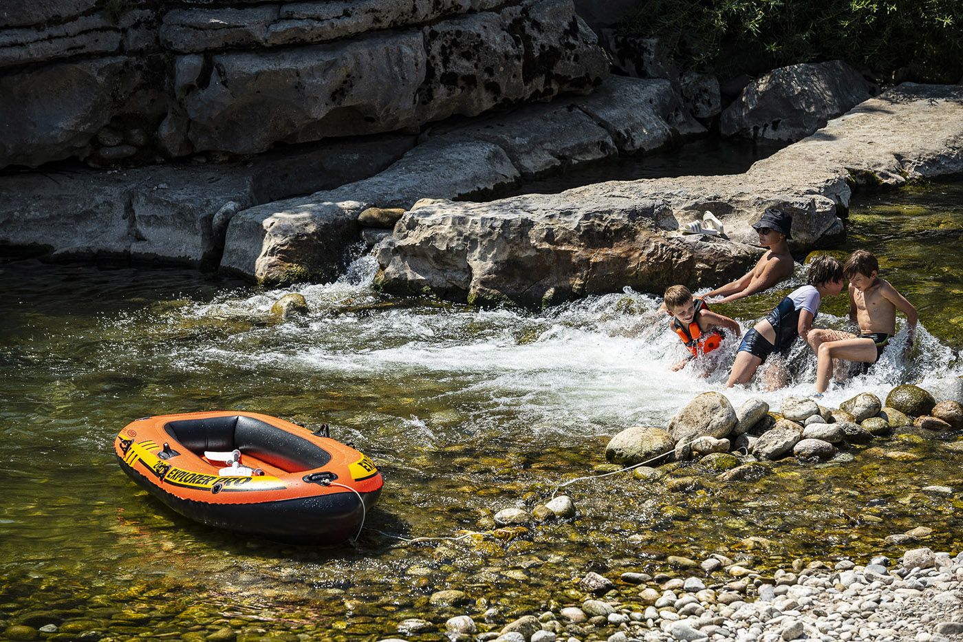 Der Fluss La Beaume, ein reiner Nebenfluss der Ardèche, dient als natürlicher Swimmingpool und ist der ideale Ort, um sich an heißen Sommertagen zu erfrischen. Sie können im kristallklaren Wasser schwimmen oder an unseren unterhaltsamen Wasseraktivitäten wie Luftmatratzenrennen und Wasserball teilnehmen. Der Fluss La Beaume bietet eine atemberaubende Kulisse für unvergessliche Urlaubsmomente. Unser privater Kinderstrand am Fluss, ein wahres Paradies für kleine Gäste, bietet dabei einen sicheren, flachen Spielbereich.