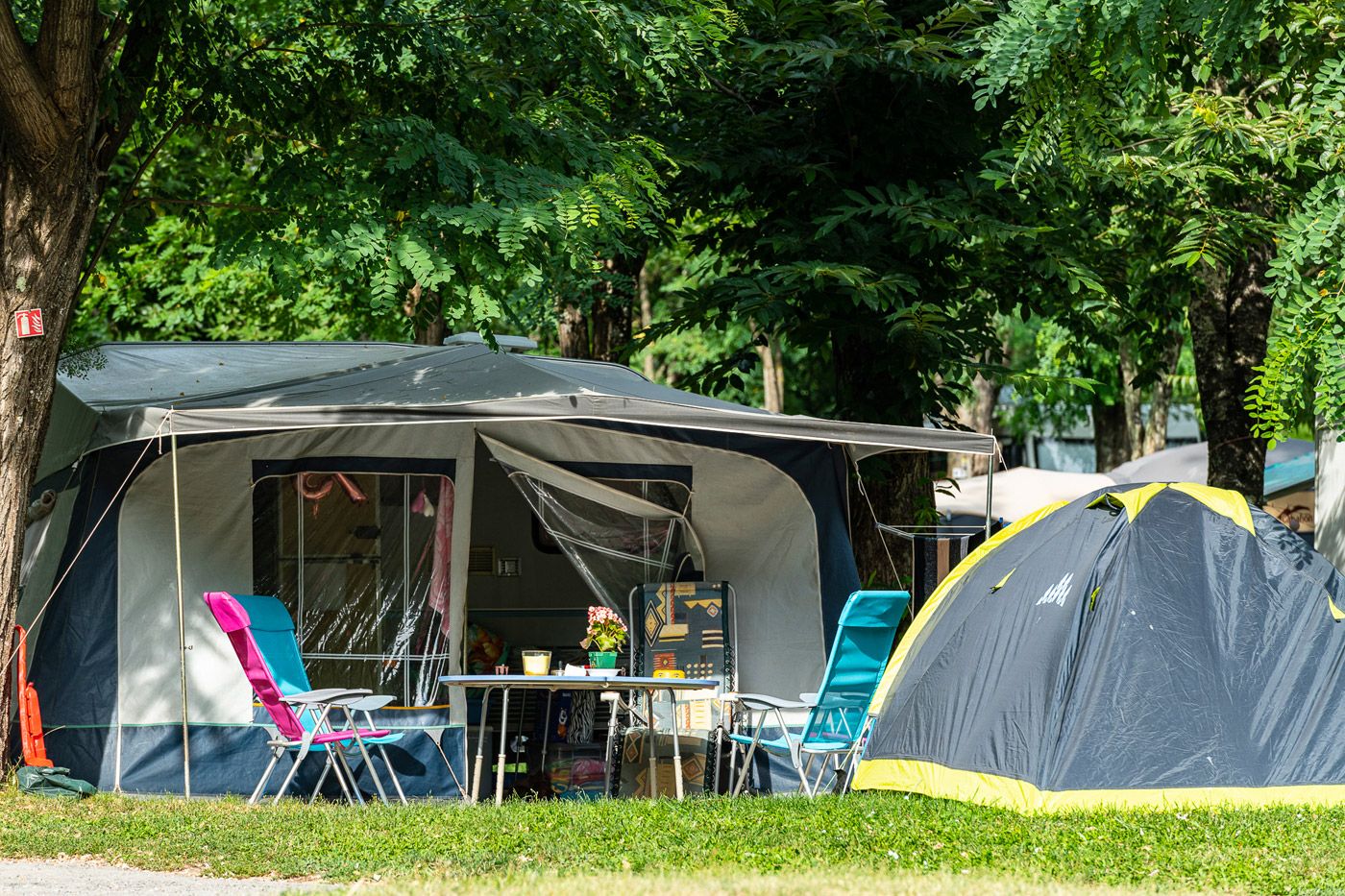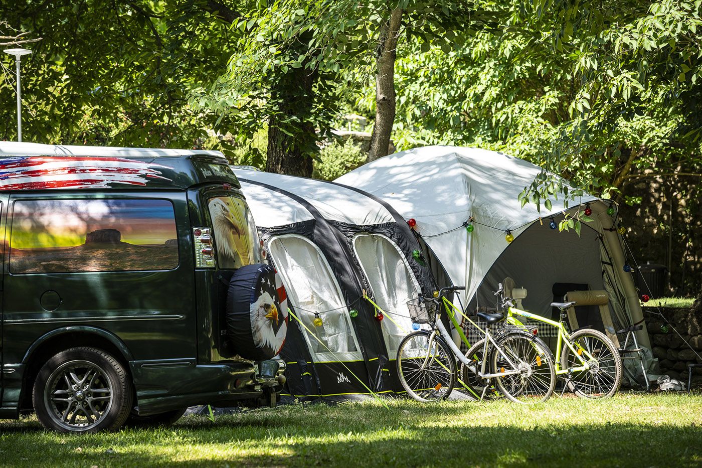 Unsere Stellplätze sind zwischen 90 und 150 m² groß und bieten alles von tiefem Schatten unter Bäumen bis hin zu strahlender Sonne – perfekt für Ihr Zelt, Ihren Wohnwagen, Ihr Wohnmobil oder Ihren Camper.