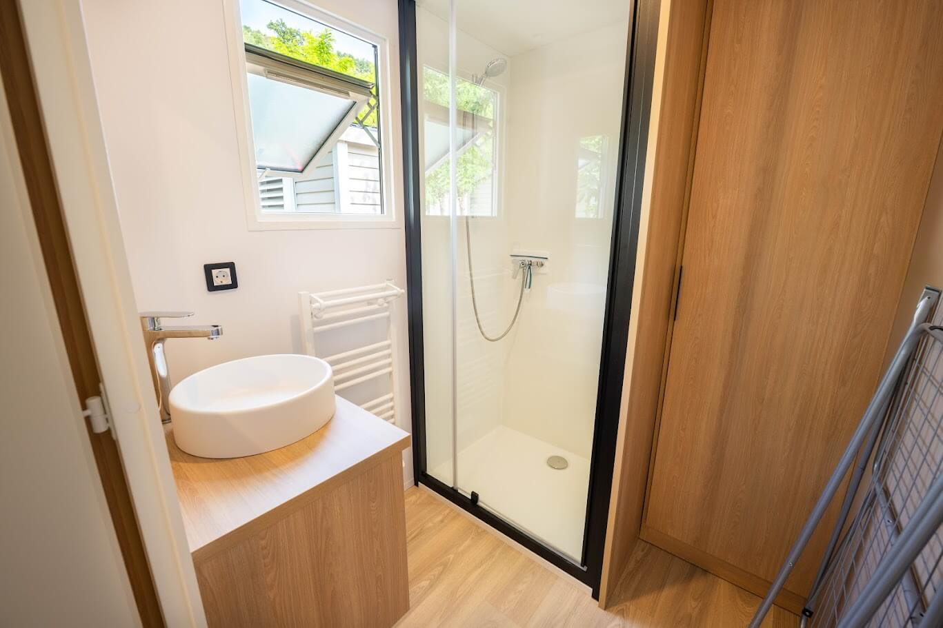 Maak kennis met onze Mobile-Home Signature met 2 slaapkamers! Deze gloednieuwe accommodatie is speciaal ontworpen om perfect aan te sluiten bij de wensen van gezinnen die verblijven op onze 4-sterrencamping in de Ardèche.